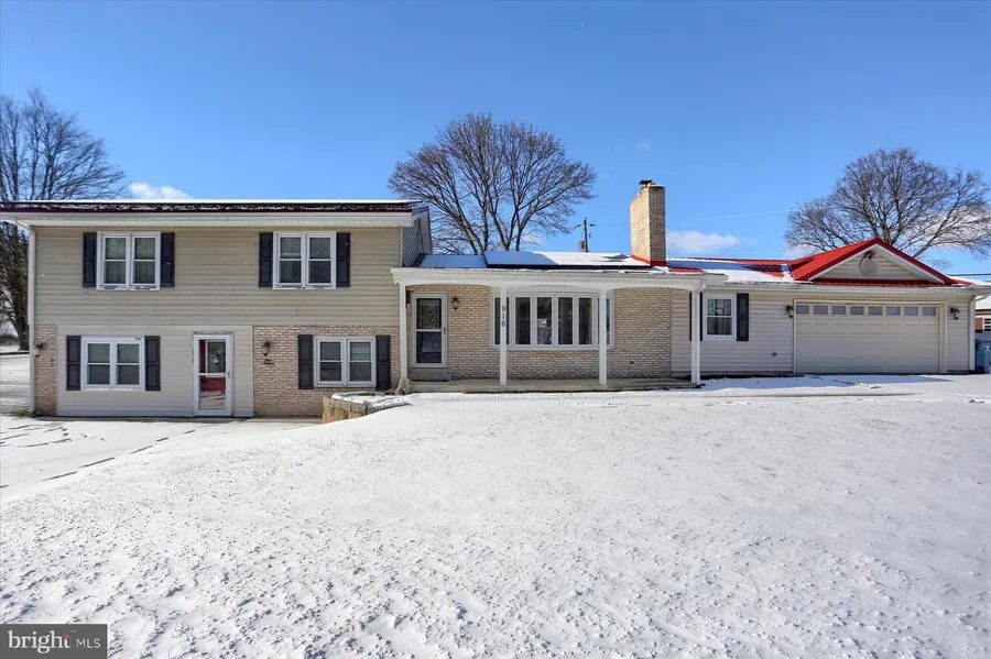 Spacious updated split level home in Mechanicsburg SD. This beautifully updated 4 bedroom, 3 full bath home offers over 2775 sq feet of living space perfect for multigenerational living, entertaining or just room to grow. The home boasts updated bathrooms, a new kitchen with quartz countertops and appliances, new flooring throughout most of the house, and 2 versatile spaces perfect for home offices or a multitude of other uses. The lower level has its own ground floor entrance, a full bath and a large flexible space making it ideal for an in-law suite, large family or game room, or guest accommodations. Continue down another partially finished level for more living space and storage areas. Step outside to your private backyard oasis featuring a large deck, fenced yard, koi pond, grilling area, large shed and plenty of room to relax, play or entertain. Have piece of mind with recent upgrades including a metal roof, new furnace, water heater and solar panels bringing energy efficiency and long term savings. Pellet stove in main living room also adds to the heating efficiency. With 2 driveways that capable of accommodating 10+ cars, parking is a breeze. Don't miss this move-in ready gem in sought after Mechanicsburg schools!