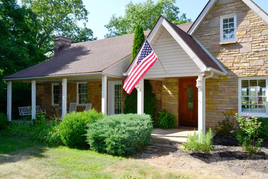 CHARMING HOMESTEAD Property! There are two beautiful stone houses side by side-connected by a porch in the back. The main house is a historic homestead with 3 bdrm, bonus, 1.5 bath, large living room, 2 fireplaces, laundry/mud room and front porch. It has all the charm of a traditional Homestead with the bonus of a spacious living room filled with light. The second house is a 1224 sq. ft. newer construction where exterior was designed to match the historic homestead house. Built as mother-in-law quarters, 1 bedroom, 1.5 bath, handicap accessible, open concept, breakfast nook, ADT, Walk in Closet and Shower. There is a 3-bay garage and 3 outbuildings. 11.6 beautiful acres boarding Bear Trace Golf Course/Cumb Mtn. State Park. Can be purchased furnished w/exception of a few personal items.