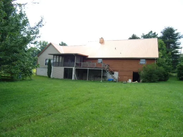 4.72 ac with a 2 story Log home with an unfinished basement 5BD/2BA, approx. 3816 sq ft, vaulted ceilings, rustic wood walls and features, open concept, stone FP, updated baths, covered front porch, open & covered screened in back deck, handicap ramp & professional landscaping. Large stocked spring fed pond, spring stream, 30X40 Pole Barn, 10X30 implement barn and several other outbuildings. Grape vines, fruit trees, garden spot, some fencing, pasture areas for a horse & livestock.Mostly level terrain and open fields. Ideal mini farm. Country rural setting but only 3 miles from I-40. Seller will remove the trees at front of home at acceptable offer.