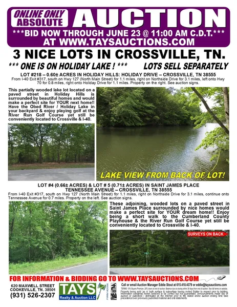3 Nice Residential Lots (Selling Separately) in Crossville, TN 38555