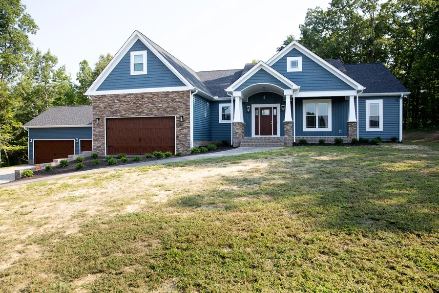 If you are wanting a custom built home but realize you don't have time to wait come fall in love. This remarkable home has no match in the area. Home has an expansive main level with open living, dining & kitchen. Kitchen has white cabinets, quartz countertops, white designer tile back-splash, & an upgraded black stainless appliance package that includes a convection microwave, oven, 5 burner gas cooktop & a split door refrigerator with freezer on bottom. Enjoy the island for cooking & entertaining. Walk out from the dining room to a covered rear porch with an exceptional patio with pre-wiring for future hot tub or bar. Main level master suite provides space for living, a large closet for the shoe or clothing fan, and a bath with separate walk-in shower, an oversized tub, double sinks and room to navigate getting ready for your day with a partner. The main level has 2 additional bedrooms, full bath, laundry room, and a mudroom bench. Upper level provides a bonus room, bedroom and full bath. The first attached garage has been converted to a home gym, the 2nd 4 car garage is ready for all car buffs. Come see the quality and upgrades for yourself. You will be glad you did.