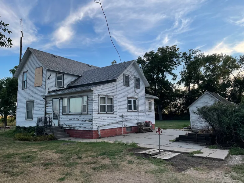 This 10.25 acre property is treelined on the north and west sides. Three plus acres are currently used as cropland. The home needs some TLC and has 3 bedrooms and a full bath. There is also a storage building, Harvester and a grain bin. Sold as is.