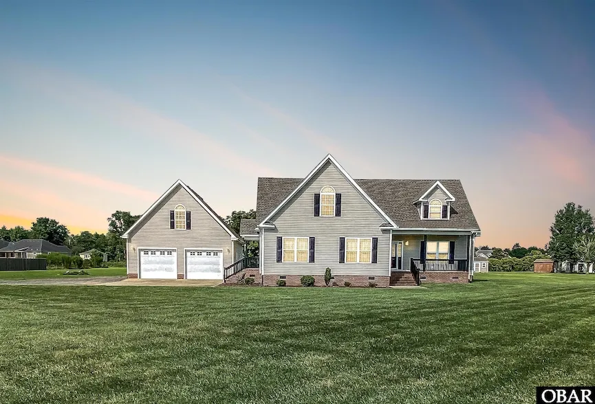 Spacious Living & Endless Possibilities on 1.56 Acres in Moyock, NC! Welcome to your dream home offering 2,997 sq. ft. of beautifully designed space, perfectly situated on 1.56 acres ideal for multi-generational living! Located just minutes from the NC/VA line, this property features NO HOA and NO flood insurance required, making it a rare and valuable find. The oversized 30x28 detached garage is a standout feature, complete with an unfinished room above perfect for future expansion, a studio, or extra storage. Whether you need a workshop or just plenty of space, it's already here. Inside, the spacious Great Room welcomes you with a cozy gas fireplace, creating the perfect setting for relaxing or entertaining. The open-concept kitchen is a chef s dream, offering abundant cabinet space, stainless steel appliances, and a breakfast bar that flows into the dining area. Sliding doors lead to a covered deck, where you can enjoy peaceful views of your expansive backyard. The primary suite is located on the main floor, featuring a double vanity and walk-in shower. Two additional bedrooms and a full bath are also on the main level. Upstairs, you'll find even more space with a 4th bedroom, two flexible bonus rooms, and another full bath ideal for a home office, media room, or guest space. Enjoy the best of both worlds with a quiet country lifestyle and easy access to Hampton Roads, Elizabeth City, and the Outer Banks. Don t miss the local Moyock farmers market and the charm of Currituck County living. Call today to schedule your private tour homes like this don t come around often!