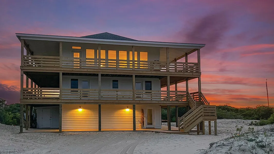 Welcome to The White Lotus - a bespoke coastal retreat where driftwood and linen meet the sea. Perched high above the Atlantic in the wild and wonderful 4x4-access area of Carova, this brand-new home offers sweeping ocean views and a perfect blend of strength and sophistication. The top level stuns with a spacious open-concept living area, anchored by a sleek fireplace adorned with custom tilework. A pristine kitchen showcases snowy white quartz countertops, complemented by top-of-the-line white and gold appliances. Underfoot, oversized organic rugs ground a custom leather L-shaped sofa and a striking live-edge dining table crafted from raw quartz and epoxy. Wraparound 10-foot decks embrace the home, offering 360-degree outdoor living and seamless entertaining in every season. On the mid-level, three serene bedrooms invite you to drift away. Each is wrapped in imported grass cloth wallpa...