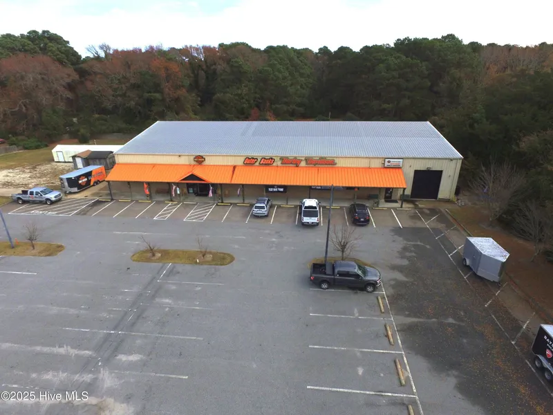 Prime location on Hwy 158 in Harbinger just 2 miles from the bridge to the Outer Banks, this 16,160 sq ft building on 3.27AC has 164.74' of road frontage on Hwy 158, central HVAC throughout, natural gas connected, very high ceilings (27'9'' at the ridge and 21'5'' at the eaves). Showroom is 14,039 sq ft (101' by 139') with two restrooms and several sales offices, service portion with 14' high roll up steel door is 3,131 sq ft (101' by 39') which includes storage in the back. Standing Seam metal roof and large covered front entry. Expansive parking with 104 spaces, multiple outbuildings and covered picnic areas.