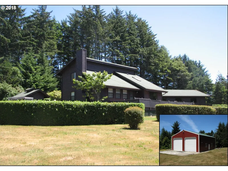 PEACEFUL COUNTRY LIVING! HUGE RV GARAGE! 1.37 mostly level acres of beautiful country property in the Cape Ferrelo area on paved road. Home has 3 bedrooms 2 baths, vaulted living room with ductless heat pump, pellet stove & deck access. RV garage has drive thru bay doors, loft, shelves/work bench. Patio plumbed for hot tub. Redwood trees, fruit trees, huckleberry & blueberries! Room for RV parking & all the toys! "As Is" at this price!
