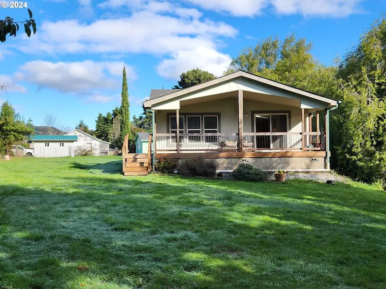 13 acres with a beautifully maintained 2006 3BR/2BA home. Sited to overlook a beautiful meadow and stream, the deck is the perfect place to watch the elk and other wildlife wander through. Home has vaulted ceilings, skylights and solar tubes, ample pantry storage with roll out drawers, owners suite with soak tub, shower and dual sink. Large walk-in closet with built in organizers. Laundry has deep sink, washer and dryer included. Pasture is seasonal wetland and has a covered barn area. There are 2 other homes on the property- 1 can be used as storage. Both are in poor shape. Nice spot tucked behind the greenhouse/yard area that is a nice level area also. Come take a look!