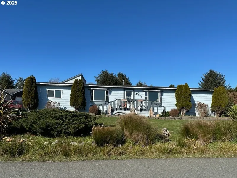 Looking for a large home to accommodate family and friends? Here it is! This 4 bedroom. 2 bath manufactured home has a 2 bedroom, 1 bath ADU Plus full hookups for your RV company.Need help with the mortgage? There is an assumable VA loan for $245,000 at 2.5%. The interior of the home has been sheet rocked. There are special earthquake ties under the building. In case of a power outage the 7500 watt generator will keep you working until power is restored. Lots of new blinds have been installed. The charming ADU has one bedroom on each floor, plus a full bath and nice ocean views from upstairs.This large lot has plenty of space for your garden and the fenced rear area will keep your pets confined and happy.This unusual property is within walking distance of Fred Meyer store and the ocean.