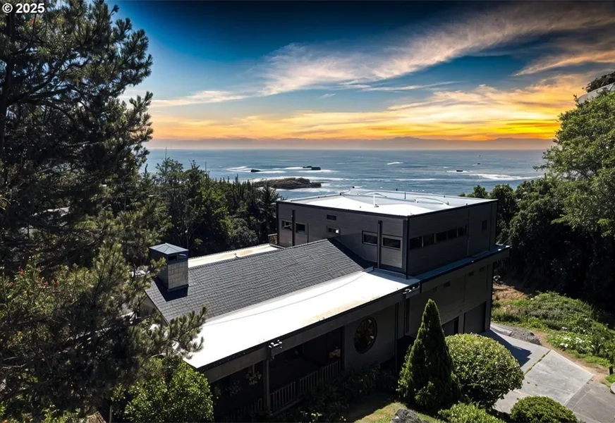 OCEANVIEW COASTAL DREAM - 2-Minute Walk to the Beach!Wake up to unobstructed views of the Pacific and spend your days with the sand just steps from your door. This rare 4-bed, 4-bath coastal gem offers private beach access, luxury living, and the perfect blend of peace + convenience. With the sand and surf so close, every day feels like a retreat. This beautifully designed home includes a few tasteful nods to Norwegian ship design and is all about comfort, light, and connection to the coast. Windows frame ocean vistas, bringing the beauty of the shoreline into the main living area and bedrooms. Warm wood finishes create a welcoming and serene atmosphere throughout. Natural light pours from the floor to ceiling windows in the open-concept living, dining, and kitchen, providing an ideal setting for gatherings, with seamless flow to the expansive main deck-perfect for outdoor dining, entertaining, or simply relaxing while watching the waves roll in. From the upstairs bedrooms, walk out to the upper deck where sweeping ocean views await. Each of the four-bedroom suites includes its own private bathroom, making hosting family and friends effortless. An elevator connects the main living level to the upper floor for easy access, and a hidden outdoor sink/wet bar adds a fun surprise for those who love to entertain. Recent upgrades include a newer roof, fresh exterior and interior paint, and new flooring throughout, ensuring a move-in-ready experience. The lower level offers generous storage space along with a deep 3-car garage and bonus room, providing room for vehicles, toys, and coastal gear. Located in a quiet gated community surrounded by lush landscaping, this home feels worlds away while still being just a short drive to Brookings' charming downtown shops and restaurants. If you've been dreaming of a home where every day feels like a vacation... THIS. IS. IT. Be sure to watch the "TO THE BEACH" Video.