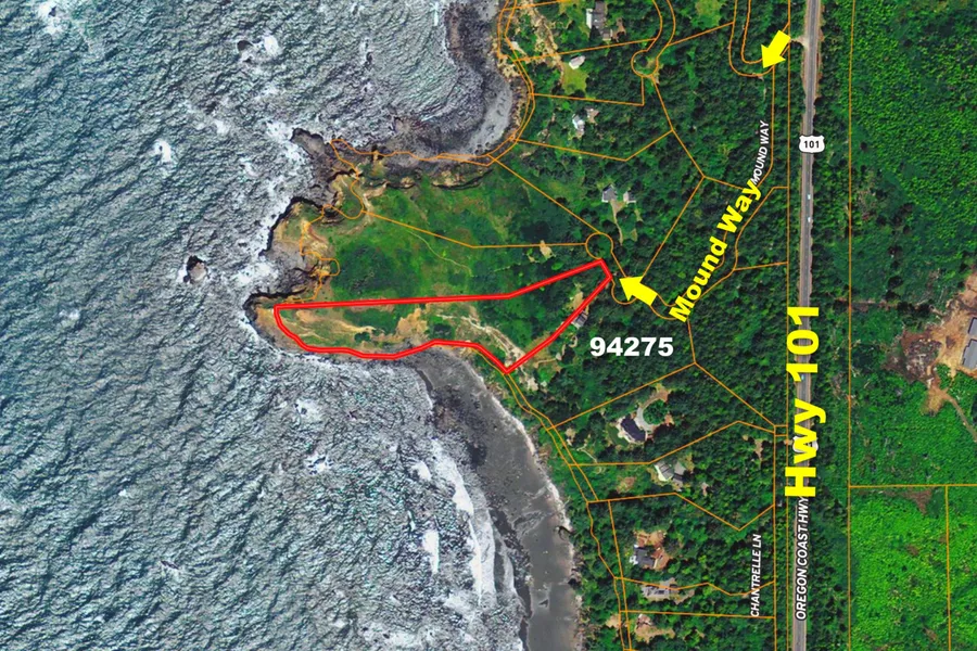 Driving Directions: From Gold Beach, drive north on Hwy 101 approximately 12 miles. Turn west on Mound Way. The parcel is on the left after, and adjacent to, the home at 94275 Mound Way. Take the aerial map.