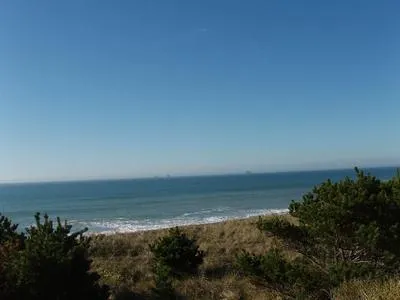 OCEANFRONT CABIN on 1 acre of land: a concrete block 1 br, 1 ba, a single car garage with miles of beach to walk adjacent. This western view has colorful sunsets, fishing boat activity and whale-watching opportunities. Priced to sell.