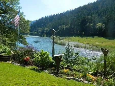 GUEST LOG HOUSE - Watch the Salmon make their way up the stream to spawn in fall. You will enjoy this peaceful unique place on earth. The Agness Oregon area is a Fantastic natural area. The sight and sounds of this pristine mountain stream flowing into the Rogue River will amaze and delight you every day. World class Kayaking, Rafting, Fishing, Boating, Hiking Trails, Biking, Photography. Surrounded by Rogue National Forests. Great tomato growing. Located two hours north of the California Red Wood Forests. Its less than an hour to the Beach. Pick up some FRESH Red Snapper, Salmon, Oysters, and Prawns. WONDERFUL LIFESTYLE!
