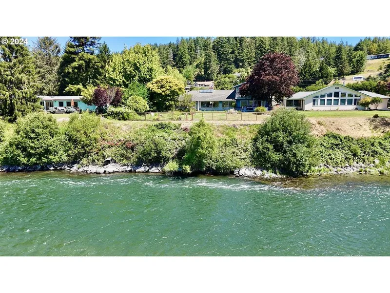 Huge price reduction! Welcome to your dream riverfront oasis! This stunning 4-bedroom, 3-bathroom home is nestled on the world-famous Rogue River, offering unparalleled access to nature's beauty and recreation. Situated on a generous half-acre lot in a prime, desirable location, you'll enjoy the sunny side of the river with a great climate. The main residence boasts gorgeous views from nearly every room, ensuring a serene and picturesque setting. Decks upstairs and downstairs. 2 car attached garage. Just minutes from town and beaches, convenience meets tranquility in this rare property. An additional 1-bedroom, 1-bathroom dwelling provides flexible space for guests, extended family, or potential rental income. Outdoor enthusiasts will appreciate the proximity to fantastic fishing holes and the abundance of wildlife that frequents the area. Whether you're casting a line, observing nature, or simply soaking in the breathtaking views, this property offers a unique opportunity to experience the best of riverfront living. Don't miss out on this extraordinary home that combines luxury, location, and lifestyle in one perfect package. Schedule your private tour today and discover the magic of life on the Rogue River!