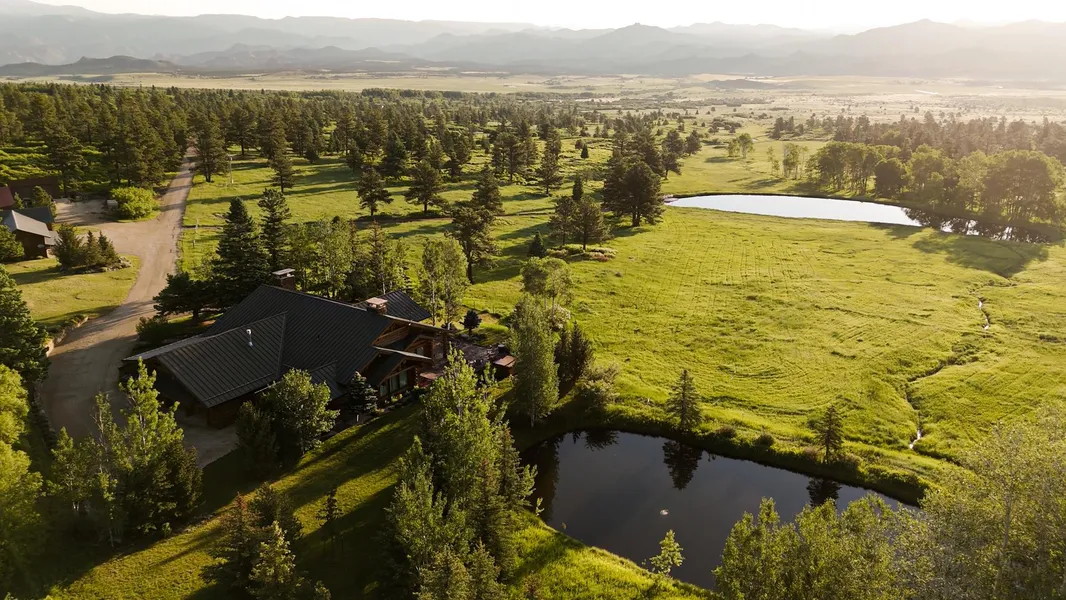 The ranch is anchored by a beautiful fully furnished, single-level, 2 bedroom, 2.5 bath, 4,500 sf luxury log home with an attached 3-car garage with fully modern and updated amenities. The kitchen, dining, and great room command spectacular views of Pikes Peak to the east, with an easily accessed outdoor living room, spa patio, and nearby pond. With radiant floor propane heating, a modern kitchen, media room, and well-appointed office space, the home offers a contemporary living experience in a secluded rural setting.