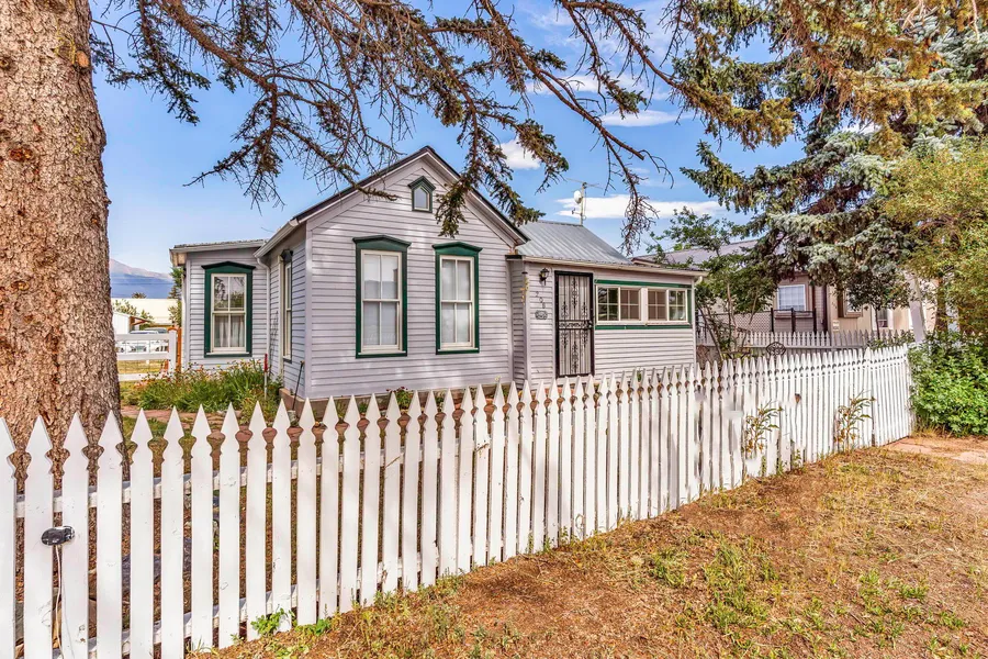 Remodeled charmer with white picket fence, vaulted ceilings, and refinished wood floors. New KitchenAid granite/hickory kitchen with copper sink, spa bath with jetted tub, and floor-to-ceiling bookshelves. Enclosed porch, new 112-car garage, and south-side Trex deck with Sangre views. Bright dining and windowed breakfast nook. Move-in ready with classic curb appeal and mountain ambiance.