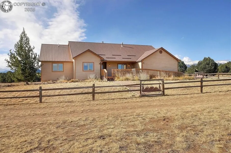 A MUST see is this spacious 4-bedroom, 4 bath retreat which sits on 35 acres in Beckwith Mountain Ranch, offering breathtaking views of the Sangre de Cristo and Wet Mountains. The property provides ample space for horses to roam, along with an abundance of wildlife, and a grazing lease that keeps taxes low. Step inside to discover an open floor plan featuring vaulted ceilings and plenty of windows that fill the space with natural light. The recently upgraded luxury vinyl flooring adds a touch of modern elegance, while the large, new kitchen becomes the heart of this home which is perfect for entertaining friends and family, or enjoy cold Colorado nights sitting in front of the crackling wood stove. An expansive rear Trex deck provides a perfect place to unwind and take in the mountain views. A 800 square foot suite includes its own bed, bath, living and kitchenette areas; perfect for gue...