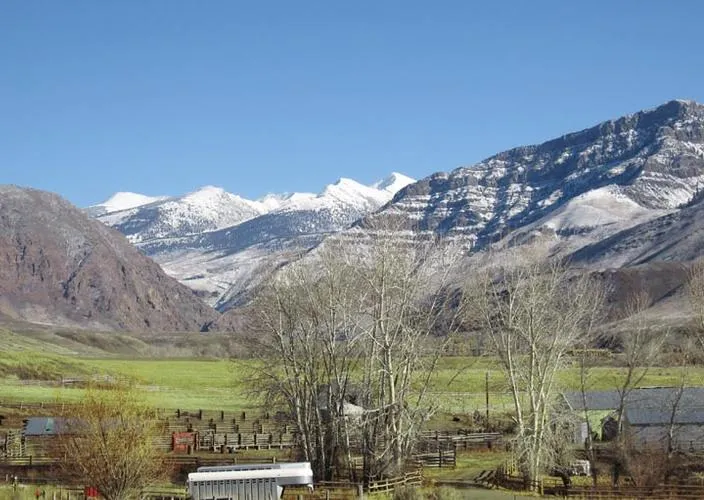 The view from the ranch is high mountains, pastures, the Salmon River and dramatic views of the Lemhi Mountains.
