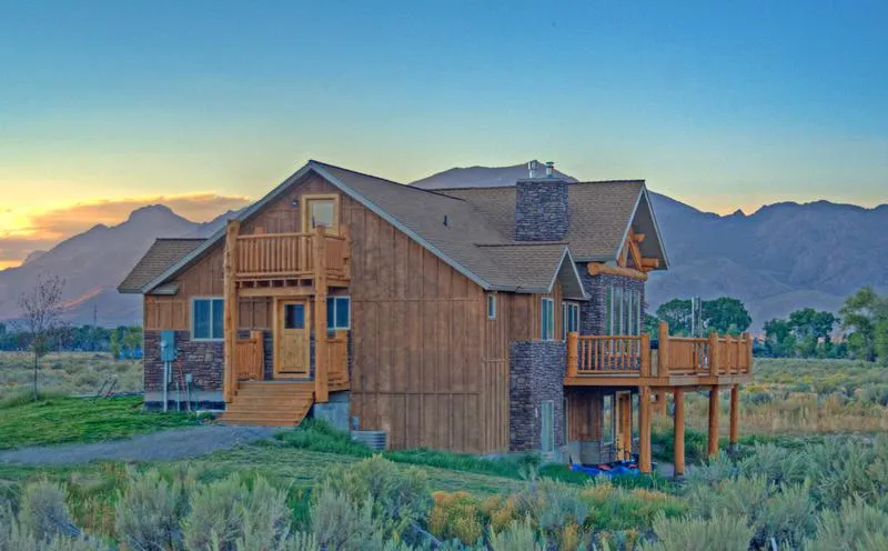 Located in the heart of Idahos Big Lost River Valley, less than an hour drive to Sun Valley over beautiful Trail Creek summit pass, this property has everything youve dreamed of including Big Lost River Frontage and beautiful 360 degree views. At the end of a private lane a new 3800+/- sq. ft. home was built in the fall of 2010. A new lawn was started in the summer of 2011. This home has custom hand peeled log accents throughout. The great room has a ~20 ft cathedral ceiling with custom log purlins and open trusses with hand peeled logs up to 18 in diameter. The great room also has a very large river rock gas fire place. Large alpine windows and windows in the log trusses at each end of the great room allow natural light into the room while offering incredible views. There is a balanced mix of tongue-in-groove pine and sheet rock throughout the home. This home has 5 finished bedr...