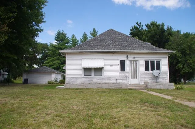 Large Lot! Front porch. The living room and dining room have original hardwood floors. The kitchen has a breakfast nook and lots of cabinets and counter space. Three bedrooms and one full bathroom. Main floor laundry. Unfinished basement and oversized detached garage.