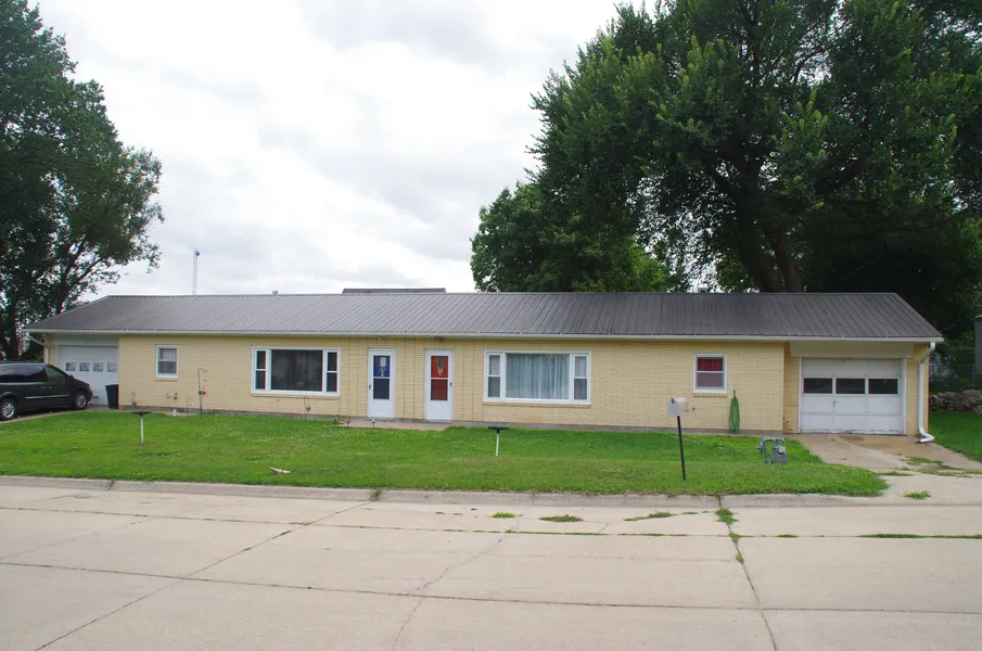 Open living and dining area. Each unit has 2 bedrooms and 1 bathroom. The kitchen includes laundry hook-ups. There is an attached single-car garage on each side. The east unit is rented until May 2026. Come and check it out!