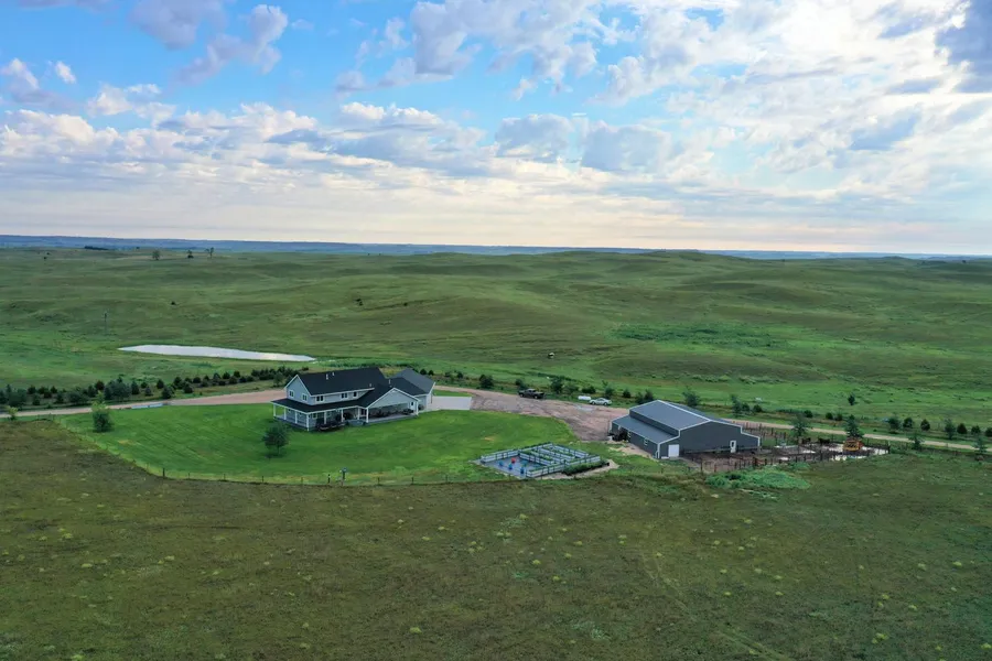 Built in 2013, on a quiet 14 acres just five miles south of Arnold, NE sits a stunning custom-built 3,852 sq. ft. home. This current family home is set up to be a bed-and-breakfast with a total of seven bedrooms, five bathrooms, and a home office! Coming in from the three-car garage is a large laundry room and full bath to clean up after a long day. Across the hall is the home office with a window overlooking the front yard and driveway. The fiber optic cable that was recently installed gives you high-speed internet all throughout the house.