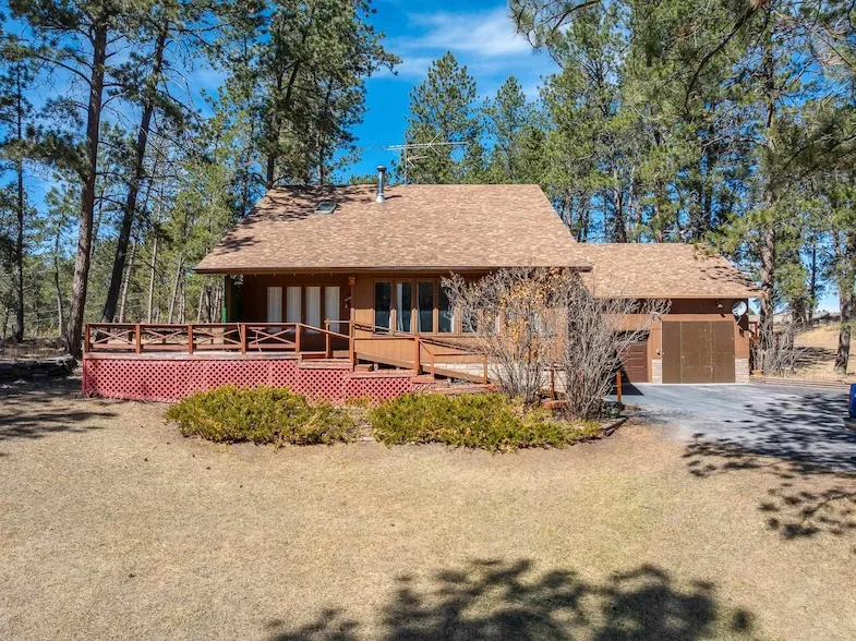 Excellent Location with Income Potential Prime Location West of Custer! This one-of-a-kind vintage home is packed with character, functionality and income potential. Nestled just west of Custer, it offers a unique opportunity to create your dream space while enjoying the benefits of a separate rental unit. The main home features a spacious and distinctive layout, with two upstairs bedrooms that open onto private decks and share a convenient Jack-and-Jill bathroom. The primary bedroom is located on the main level, alongside a laundry area designed for effortless living. Adding to the home's charm is a stunning banister and railing salvaged from the historic Harney Motel in Rapid City. There is also space available to install a pellet stove. You'll love the loft space and warm tongue-and-groove ceiling of the vaulted ceiling. Recent updates include a brand-new kitchen stove and refrigerator, new living room carpet, new blinds in LR, new commercial water heater, recent painting on exterior decks and more. Above the heated two-car garage, a separately metered apartment with its own private entrance and parking area provides additional income potential. This space has been recently updated with a new washer/dryer combo, new refrigerator and stove, making it even more appealing to tenants. Whether you're searching for a primary residence, a vacation getaway, or an investment property, this home presents incredible possibilities in a fantastic location. No covenants!