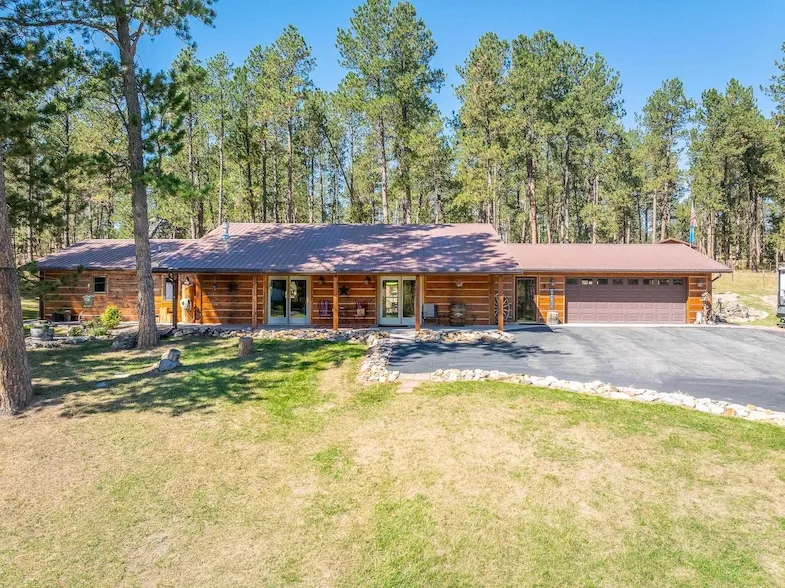 Tucked away in a private setting, this exclusive square log home offers the perfect blend of rustic charm and comfort all just minutes from Custer s attractions and entertainment. Set on 2.12 covenant-free acres, the property is a rare find, combining luxury living with freedom and flexibility. Step inside to be greeted by warm honey-toned logs, rich wood flooring, and a stunning stone gas fireplace that sets the tone for a cozy, welcoming interior. The open-concept design flows seamlessly around a custom-built kitchen island just imagine friends and family gathering here for meals, laughs, and memories. This single-level home is thoughtfully designed for accessibility, with wide 36-inch doorways, and offers three spacious bedrooms and three bathrooms. The kitchen is equipped with new appliances, a reverse osmosis system, and a water softener, while the programmable heating system with an electric limiter helps you manage energy costs. Outside you can unwind in your saltwater hot tub, host a summer gathering around the fire pit, or enjoy a quiet morning on the covered porch. The stained-concrete patio & asphalt driveway add a polished finish, while the electrical RV hookup & backup generator provide convenience and peace of mind. The attached oversized two-car garage is fully finished, insulated, and heated complete with tongue-and-groove walls and ceiling for a cohesive look. Just steps away, a 32x44 log-sided shop has a wonderful "hobby cave" for entertaining and shop work.