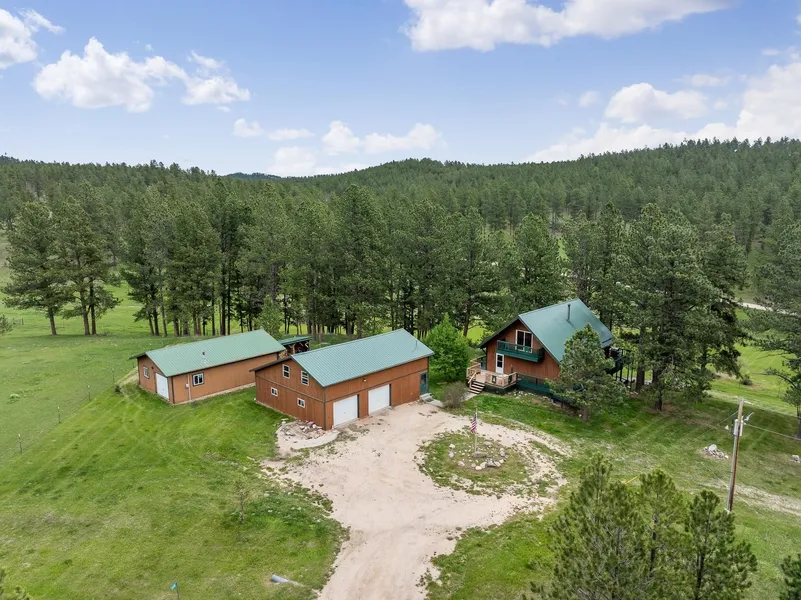 Listed by Jeremy Kahler, KWBH, 605-381-7500. Bordered on two sides by USFS, this versatile 5 acre property could be your dream Black Hills retreat! *Utilizing theacreage to its' fullest potential, you will find a spacious home, a large detached garage with secondary living space, a separate workshop, pole barn with fenced space for horses and a greenhouse to make your gardening dreams come true *The home offers 3 bedrooms, 2.5 bathrooms and just over 2,000sqft *Unique wood accents throughout help enhance the feel of rustic living, and the modern conveniences make it feel like home *The cozy kitchen and dining areas have custom cabinetry and storage, and the comfortable living room has 16' vaulted ceilings and a Heritage Soapstone wood stove for those chilly winter nights *A 13'x17' 4-seasons room adds fantastic multi-use space, and with its' direct access to the wrap around deck, enterta...