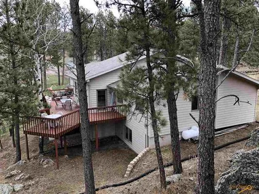 Beautiful custom built home overlooking a peaceful large pond! Home is tucked in the Pines, Aspens and rock outcroppings. High quality finishes and extra amenities throughout. All rooms are generous in size and floor plan is very efficient. Kitchen has oak cabinets, quartz countertops, and a whole extra wall of cabinets that has an office area at end. Formal Dining room by sitting area and second dining area next to kitchen that has doors out to deck. Living room is wonderful, bright, spacious, and has a gas fireplace for heat and atmosphere. Master bedroom suite is on main level and has a very spacious master bath with his and hers closets and separate toilet/shower room. Main floor Laundry/pantry with laundry sink and has convenient access to garage. Enjoy the outdoor living spaces on the huge deck and patio underneath complete with hot tub. There are fish in the pond! ONE-OF-A-KIND Black Hills Dream property.