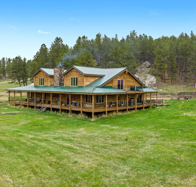 Amazing property! Beautiful custom built home! Covered porch on three sides. NICE LARGE SHOP building/garage w/ living quarters - room for motor home inside! Huge storage area on second level. Nice 5.6 acre lot very near USFS lands. Log and frame home with large logs accenting the huge great open floor plan - such a masterpiece! The owners have lovingly and diligently worked on it for years and are ready to downsize. Priced way below what it would cost to replace it at current construction prices and can be lived in now! The owner will keep working on projects and will leave material on site that is remaining. Two extra room areas in the open loft could be bedrooms or one a bedroom and one a family room. Nice balcony area, too. Pretty, seasonal creek. Such a nice setting to enjoy the beauty of the Black Hills.Pole barn building with fiber cement siding, has 18 ft sidewalls and RV hook up inside and one outside. It has a huge mezzanine area for storage that is built like a tank. They lived in the living quarters for several years. It is now a shop; could be converted back. The home has a state of the art filter system that takes the rust out of the water. Drain tile around house and out in field to keep water away in the spring. Great Black Hills retreat! :)