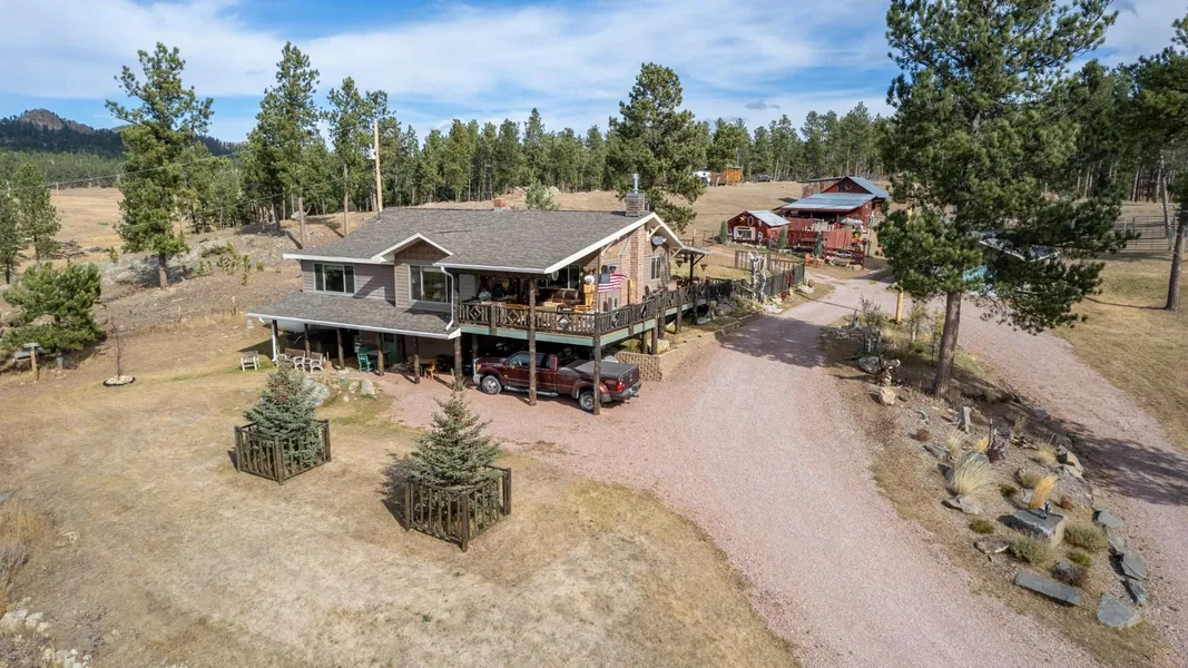 HIDDEN GEM! Rare Black Hills offering cozy Black Hills treasure with comfortable restful sitting areas inside (and outside!), views of the Needles, live creek, and bordering USFS lands! Such a unique package! Beautiful 5.3 acres! 3 beds/3 baths. Completely updated from the studs out to include flooring, additional insulation, windows, handmade cupboards, new boiler, generator subpanel, and so much more. Very nice finishing touches throughout including such items as historic doors out from Deadwood and from the Pillsbury Estate, MN. Sellers have added a bonus/sunroom, a spectacular spa/master bath, and log accents to the porches and patios. There is an efficient woodstove and also agas fireplace with native stonework for great ambiance! Property is all set for horses with barn/loafing shed and frost-free hydrants just saddle up and ride out on USFS lands! Nice detached garage, chicken c...