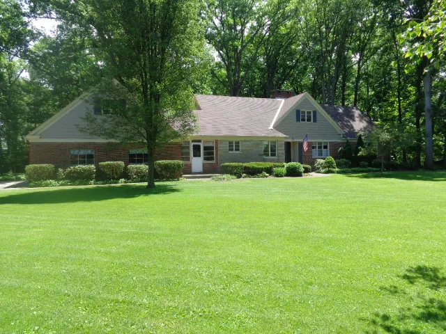 One of a kind custom built one family owned brick home on a truly exceptional private wooded 6+ acre lot. Separate driveway leads to a 6 car pole barn (75x24) and a middle barn (30x20) with an attached 12 wide car port. Meticulously maintained landscape and great yard for entertaining. Large 2 car attached garage with stairs to attic above. Breezeway connects the garage and house. 2 large size bedrooms, library/den and 1 and 1/2 bath on first floor. 3 generous size bedrooms (one includes a walk-out deck) and a full bath upstairs. 1 large bedroom in the basement. Large picture windows in living room and dining room overlooks back yard and woods. 2 fireplaces (basement & living room). Glass block basement windows. Tie-in sewers and basement waterproofed in 2009. Plenty of storage throughout.