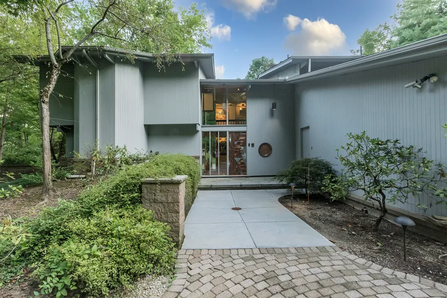 Lofty ceilings and floor to ceiling windows frame spectacular views of the natural surroundings from this extraordinary home remodeled and updated throughout in the last two years. This 3 bedroom, 3 1/2 bath stunner is nestled on five park-like acres sitting above the Chagrin River. Enjoy views from the glass-walled family room or entertain in the great room complete with fireplace, bar and a conversation lounge inspired by the famous modernist architects Eero Saarinen (the Miller House). A modern gourmet kitchen with quartz countertops and 3 baths with marble countertops and a powder room have been newly remodeled. Take tranquil walks along the new brick pathway surrounding the entire house, read a book by the waterfall, or enjoy a refreshment on the large back deck complete with jetted hot tub. Picturesque cul-de-sac location with coveted Chagrin Falls address and Geauga County taxes.