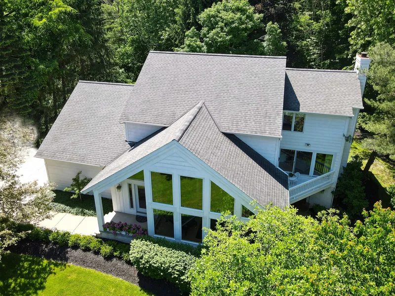 Across from the Metroparks and three minutes from Chagrin Falls, you will find this bright, light filled soft contemporary custom designed and built home with unique touches throughout. The two story foyer opens to the living room dining area with red oak hardwood floors overlooking a treed oasis and side deck where you can enjoy your morning coffee and watch the sun rise. The open concept kitchen, family room and and breakfast area all overlook the private back deck and lush yard. The kitchen features an island with gas cook top, built-in stainless steel appliances and granite countertops. A large half bath and laundry room complete this floor. This house is ideal for entertaining both inside and out with easy flow between spaces. The awning covered back deck, easily accessible through sliding glass doors, is a cozy space for outdoor dining or entertaining. The second floor features thr...