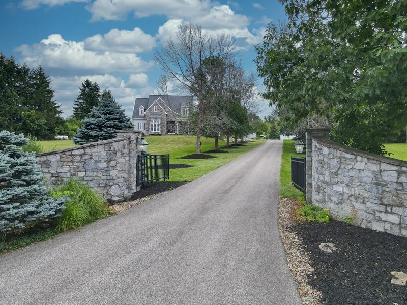 A dramatic gated entrance leads to Castlewood Farm! Meticulously maintained both inside and out, this special property is a dream come true! The charming wrap around porch welcomes you to this Amish built farm house, built in 2016. Enjoy 10 ft. ceilings, rich hardwood flooring and light filled rooms throughout the open floor plan. The comfortable great room with its custom fireplace flows into the well equipped kitchen and adjoins the most delightful 3 season sun room with a cozy stone fireplace. Formal dining room and a private study with full bath provide additional living space. The owner suite is conveniently located on the first floor with His & Her walk-in closets and luxury bath. Upstairs are two additional bedrooms, two full baths, second family room and bonus room/fourth bedroom. The lower level is finished and has plenty of storage as well. *** Note all improvements & farm info...