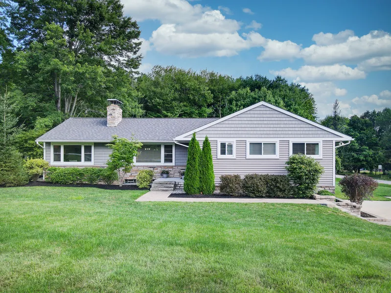 Charming ranch that has been nicely and recently updated and is completely move in ready! This house is in pristine condition AND in a lake community! Sitting on over an acre, a long paved driveway and stone walkway with new landscaping lead to the main entrance. The entry opens into the light filled living room with a fireplace and beautiful hardwood floors throughout. A cozy dining area with updated fixtures and access to the back deck leads to the renovated kitchen with granite countertops, white cabinets, stainless steel appliances and new flooring. An additional living area off the living room is the perfect home office or separate entertaining space and features new flooring and lots of light. Three bedrooms and two full baths on main living level. Hardwood floors under carpet in bedrooms / have not been re-finished. The primary suite features an en-suite bath with new vanity and flooring, secondary bath is located in hallway and is also updated. Lower level includes laundry room with washer and dryer and useful space for storage or can be finished for add'l living space. The lower level opens into garage area for two cars. Warm weather will be enjoyed on the large back deck with a built in bench and plenty of green space. Brand new roof and newer well, many more improvements, check updates list! Membership to Bellwood Lake is optional at $250 per year for lake access. Chagrin Falls Schools. Book an appointment today.