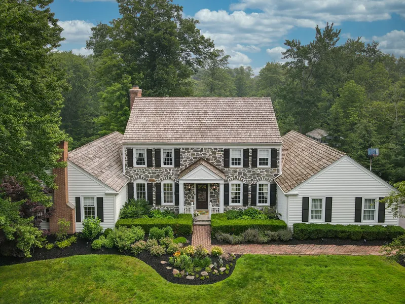Situated on a lushly landscaped lot, this impeccably cared for Western Reserve style colonial home exudes curb appeal and charm throughout. Minutes from downtown Chagrin Falls restaurants, shops & parks. Stone exterior with newer cedar shake roof (2017) reflects classic architecture style. Gracious foyer opens to newly renovated sitting room w fresh white paint, gas fireplace & high ceilings. Cozy family room w natural wood beams, fireplace, hidden wet bar, & access to patio w incredible views. The fully renovated kitchen (2016) features Quartz countertops, stainless steel appliances, oversized picture window above sink and spacious breakfast area w dining table. Traditional dining room w lovely millwork is perfect for formal occasions and entertaining. First floor owner's suite with an abundance of closet space, gas fireplace + private entrance to patio. Fully renovated bath (2019) w Ma...