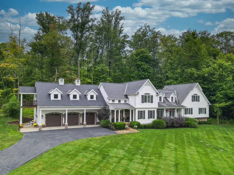 CHAGRIN FALLS SCHOOLS Sited on 2.38 acres in Chagrin Falls, this Western Reserve custom-built transitional home will take your breath away with its classic design & timeless attention to detail. A soaring entry opens onto a wide gallery hall w crown molding + hardwood throughout. A spacious office w double door entry features custom moldings and coffered ceiling. Lovely kitchen includes stainless steel appliances, custom made cabinets + sprawling granite countertops that lead to the formal dining room. Entry to the back porch allows for easy entertaining & lots of natural light within the dining + living areas. The great room is truly exceptional w 22 foot ceilings, arched doorways, massive stone hearth & fireplace. Hallway to updated first floor laundry + three bedrooms leads to a large 2nd floor family room w 1/2 bath. This area is perfect for additional entertaining. Private owner's s...