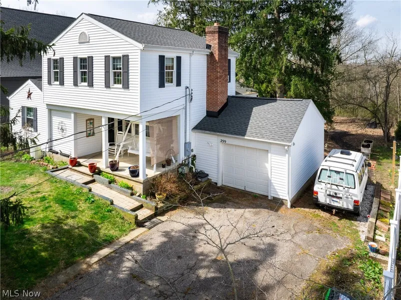 Beautiful, classic-looking white vinyl sided bungalow w/ black shutters, an inviting open front porch w/ ceiling fans for hot summer days & nights, & an oversized 1-car attached garage. Situated on a .36 acre wooded lot, this home is located just 2 minutes from downtown Chagrin Falls, the Chagrin Falls waterfall, & its famous Popcorn Shop. It is a fabulous community w/ tons of history, wonderful shops & restaurants, & plenty of community events & Chagrin Falls Schools. Built in 1951, this fantastic home has two first floor bedrooms, an updated main bathroom on the 1st floor, a huge vaulted 2nd floor owners suite w/ a dressing room & en-suite bath. There is a formal dining room perfect for holiday gatherings & formal dinner parties. It is open to the vaulted great room w/ beam ceiling. The great room is spacious & is open to the oak kitchen w/ ample countertop space. The great room has a side door that leads to planters & the side yard, plus sliding glass doors leading to a deck that you will love using for barbecues & outdoor dining. It overlooks a beautiful wooded back yard w/ walking path. The roof is only 5 years old & the interior has just been freshly & professionally painted. The hardwood floors on the main level were recently refinished professionally except for the bedroom at the front of the house. The luxuriously plush carpeting on the stairs & in the 2nd floor owners suite is only a year old. There is central air on the main level & a mini split on the 2nd floor to cool the 2nd floor. The basement is unfinished & includes a laundry & utility area. It has a transferrable lifetime waterproofing warranty & wall reinforcement strips that were added 4 years ago. The home does have vinyl windows, two hot water tanks, & a 200amp electrical panel. There is room to add on to the back of this home if you wish thanks to a larger than average lot size for the area. The kitchen could be opened up to the dining room for a more open feel if you so desired.