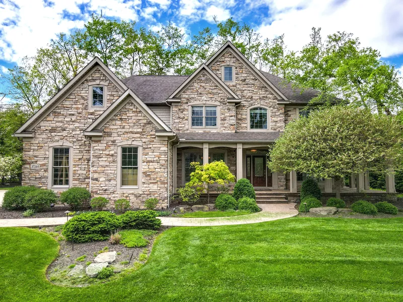 Step inside this enchanting Prestige-built home! Nestled on a wooded lot and boasting a charming wraparound front porch, this residence exudes sophistication and warmth. Gleaming hardwood floors grace the first floor, where you'll find formal living and dining rooms, a two-story great room offering picturesque views of the lush yard, a sleek modern kitchen featuring custom cabinets and granite countertops, a powder room, and a convenient first-floor laundry room. Upstairs, discover four spacious bedrooms, including a primary bedroom with a vaulted ceiling and a luxurious tiled en suite bathroom. Three additional bedrooms and two full baths complete the second floor. The lower level is a delight, with a finished space including a full bath and recreation area, perfect for hosting gatherings and parties. Outside, the meticulously landscaped yard features a maintenance-free paver backyard w...