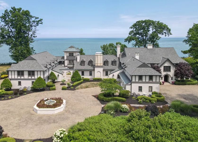 Enjoy the breathtaking natural beauty of this expansive triple-lot lakefront manor home! Sited on over 1.5 acres on Lakewood's picturesque Edgewater Drive, this original 1928 Cotswold cottage style residence was Cleveland's gilded age Architect Charles W. Hopkinson's personal home. In 1997, the cottage was magnificently reimagined + expanded by Lakewood architect Mark Reinhold during a 3-year renovation using only the finest materials throughout. The formal entry opens through the original 1928 build with Moravian tile and beautiful hand-carved woodwork. Arched passageways and hidden doors open to the library with Fretwork paneled ceiling and leaded windows looking out onto the pool and grounds. Showstopping, two story sitting room with floor-to ceiling-windows open to casual dining room and newly renovated kitchen w Quartzite countertops, double island, stainless steel appliances and bu...