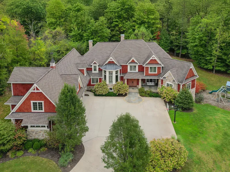 Welcome to this bespoke Nantucket-inspired estate, where timeless elegance meets modern ingenuity in a home thoughtfully curated for both intimate family living and grand-scale entertaining! Every room is graced with intricate ceiling treatments that capture the eye and elevate the space. At the heart of the home, a gourmet kitchen commands attention with its wraparound cabinetry, dual islands, and an expansive dining area. Flowing effortlessly into the living and family rooms, as well as the outdoor entertaining spaces, the kitchen serves as the social hub of the house. The layout continues with a hallway leading to various retreats, including a sunlit den and a charming sunroom and a first-floor guest/in law suite with private access to the picturesque front porch that offers a perfect sanctuary for visitors. Another hallway leads to huge laundry room and family office space. Meanwhile, the second-floor private office and a versatile theater room—equipped with top of the line FULL SWING golf simulator —are accessed by a discreet back staircase. The primary suite is a true escape, complete with an expansive dual walk-in closet and a spa-like bathroom w steam shower. Three additional en-suite bedrooms, a cozy loft, and a second-floor laundry room add convenience and comfort to the upper level. The lower level of this home is dedicated to leisure and socializing. A fully appointed bar invites guests to gather for a round of billiards or to watch a game. Outdoors, the living space extends to a covered patio with a built-in gas fireplace and an outdoor kitchen, designed with a bar counter for alfresco dining. Stone pavers wind through the landscape, leading to a serene fire pit area and a tucked-away side patio for more intimate gatherings. The property's oversized four-car garage offers ample storage. Situated within the Chagrin Falls school district, this home exemplifies refined living, where every detail speaks to quality, luxury, and thoughtful design!