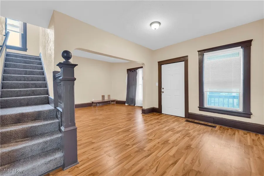 Move-in ready Colonial in Cleveland with charm, updates, and investment potential! This well-maintained home welcomes you with a spacious covered front porch overlooking a fenced-in yard-perfect for relaxing or entertaining. Step inside to a bright living room that flows seamlessly into the formal dining room and refreshed kitchen, complete with dark cabinetry, stylish tile backsplash, and a double sink. Neutral paint and updated flooring throughout give the home a clean, modern feel. Upstairs, three comfortable bedrooms share a full bathroom updated with a newer vanity and modern fixtures. The full basement provides laundry space and ample storage, while the paved driveway adds convenience for off-street parking. Newer vinyl siding ensures low maintenance living and long-term durability. Situated near the Fairfax neighborhood and just minutes from the Cleveland Clinic main campus, this ...