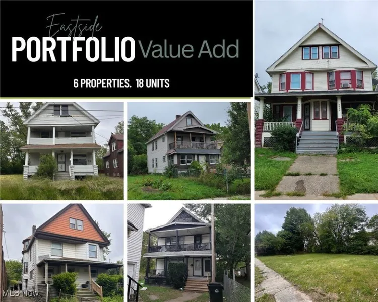 This Portfolio offers a unique opportunity to acquire 6 parcels that include 6 multifamily buildings and a parcel of land on Cleveland's eastside-totaling 18 units with a diverse mix units. Priced at just $25,000 per unit / $67.89 per sq ft, it is primed for a motivated investor. Current rents and occupancy are below market, resulting in a present cap rate of -2.9%. Once stabilized and repositioned, the proforma cap rate jumps to 33.8%, with gross rental revenue projected at $211,800 annually. Current monthly income: $1950/ mo (from Only 3 occupied units) Current Gross Income: $23,400/year Proforma Gross Income: $211,800/year Actual Expenses: $36,544/year (expected to normalize to $53,312 at stabilization) Proforma NOI: $147,898/year (current NOI is negative) Projected Cash-on-Cash: 107% | IRR: 178% Unit Mix: Studios: 4 1BR/1BA: 3 2BR/1BA: 6 3BR/1BA: 3 5BR/1BA: 1 All properties need varying levels of renovation and lease-up, but most major capital expenditures are already factored into the proforma. Comparable sales in the neighborhood support an ARV between $648,000-$716,000, with plenty of margin for value creation. Whether you're looking to renovate and refinance, reposition and hold, or eventually sell as a stabilized package, this portfolio offers an unbeatable entry point into Cleveland multifamily with major value-add potential and strong projected returns.