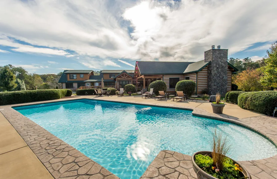 Welcome home! This unique log home sits on 50 acres, just 30 minutes to downtown Chattanooga. Your tour of 101 Antler Drive begins outside where peaceful mountain views are your backyard. Expansive porches and patio areas are ideal for dining, entertaining, and enjoying morning coffee as they surround the swimming pool. Enter into the main house where the log architecture speaks for itself. Morning light pours into the living room and bounces off the hardwood floors. Gather around the stone fireplace during the winter months. The living room opens into a dining area and main kitchen which boasts tile backsplash, stainless steel appliances, plenty of cabinet space, and is easy to maintain. Just off the living room is a guest suite including additional living space and private bedroom and bathroom. Also on this level are two additional bedrooms with beams, log detail, and a shared bathroom...