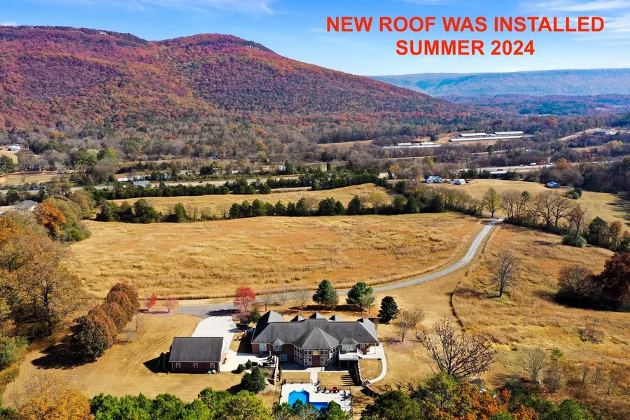 REDUCED! NEW ROOF WAS INSTALLED JUNE 2024. Make this 47.75 +/- acres with excellent views of Lookout Mountain your private retreat ideal for entertaining or a large family with open land, timberland and a 5 bedroom, 3 and one half bathroom four sided brick home with approximately 6,384 square feet and a pool. This property is approximately 30 minutes from Chattanooga, Tennessee. This home offers 3 fireplaces with gas logs, large great room with fireplace and a wall of windows on the rear of the home; open kitchen with double ovens, island, warming drawer, breakfast area ,and opens to the keeping room with fireplace and access to upper patio; large dining room; activity room; large laundry room; master suite with private patio, his and her closets, double vanities, separate tub, and shower with dual shower heads; 4 of the 5 bedrooms provide outside access for fire safety. Downstairs you...