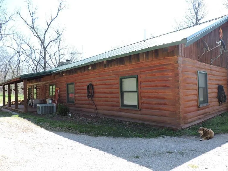 This custom built log home sits with 42 acres surrounding it. It's just minutes from area lakes and town. 2 stone fireplaces, fir beams and oak floors. Open floor plan. Sit on your large front porch over looking your farm. There is an apartment over the detached garage with a large deck and 2 bay garage below.