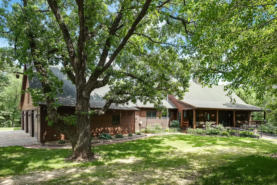 This is your chance to live out your dreams on a secluded, 6+ acres, Country Estate! Located only 40 minutes from the Airport, it is tucked away just outside of a re-creation of a Colonial Homes Development that makes you feel like youve stepped back in time! This home boasts every amenity and quality you could desire! It is a great home for Entertaining it is elegant, yet also warm & charming! You are greeted by the most inviting and wonderful covered front porch where you can grab a rocker sit and enjoy the peace and comfort of your new home retreat! Open the door to a large Vaulted & Open layout with Knotty Cedar Ceilings in the Great Room & Kitchen. The Great Room has a floor to Ceiling Stone Fireplace and skylights! The Kitchen and built-ins on the main level are all Cherry Wood Cabinets. The Kitchen has a huge granite island and updated stainless appliances. Bayed Dinette off the kitchen and a Separate Dining Room with Cherry built-ins and an Antler Chandelier. There is a wraparound newer maintenance free deck, from the front porch, to the master Bedroom to the back of the home. Master is Vaulted, leads to the Deck and has a walk-in closet and private master bath with walk-in shower and jacuzzi tub. 2nd BR on the main level has a walk-in closet as well. As you come in off the garage, you enter the mudroom/laundry room. It is so large, you feel like you entered the kitchen. It was designed as a wrapping/craft area. The Lower level has a huge Family room with Built-ins, a walk-out to an aggregate patio, a wet bar, 3 sided fireplace and a wall of built-in desk area. There is also a bath and 2 large Bedrooms. The back 28x27 workshop/hobby room is finished with a bath and dog washing area. Stairs come into this level from the garage. The entire lower level, garage and cement apron outside of it have in-floor heat. Sellers have installed an Exterior Wood Boiler to supplement the heating. Surprisingly, it is even on Natural gas. There is a barn currently set up with 2 horse stalls and a tack room and it is attached to fenced area for animals. This home truly has an extraordinary setting like a private retreat, 10 minutes south of Hastings, but considered Welch. Updates: In 2019-2021-New Front Door, Some windows on the south side & 1 on the east, 2 new water heaters, New furnace & AC , new carpet on main & new granite island.