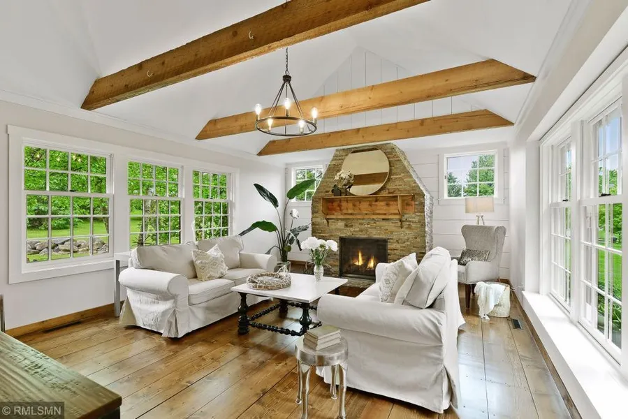 Absolutely Charming! Private country feel with easy city access! 2.4 Acres, close to everything but quiet and serene. The fresh and fabulous custom interior is surrounded by gardens, green space and blue skies. A Chef's kitchen, vaulted beamed ceilings, shiplap, huge windows, cozy nooks, and a screened porch complete the New Farmhouse ambiance. Beautiful wide plank hardwood, tile and cork floors - custom woodwork and cabinetry with quality finishes create character throughout. 4 fireplaces and professionally designed interior! A special bonus is the unique Studio - a short walk across the garden! Exceptionally versatile - it works as a large gathering entertaining space, a guest house or home based business with private entrance and parking! This park like setting includes a picket fenced garden and huge flat yard complete with large shade trees. High demand Lakeville Schools, Murphy Han...