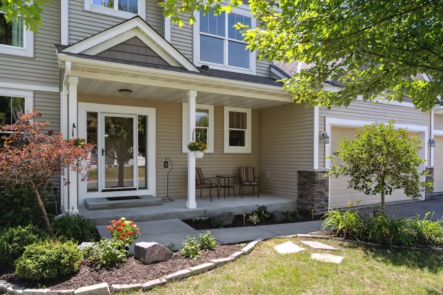 Outstanding 2 story front porch designed home. Maintenance free exterior and windows. This property is a custom-built home built with attention to detail and offers great upgrades. Wider trim, craftsman doors, enameled wide woodwork, back staircase, large great room design and neutral throughout. Plus, a huge 40x16 Amusement Room and more on lower level. Gourmet kitchen with center island and pantry. Large mudroom and closet. Back staircase to upper level and so much more! Main level walks out to entertainment sized deck with Semi-private yard. Extensive landscape offers nice privacy. The large mudroom offers a large closet and bathroom off mudroom. Owners' suite with private garden bath and huge, large walk-in closet. Upper level offers large front load washer and dryer and folding station. Knock down ceiling and neutral throughout and large windows. Welcome Home!
